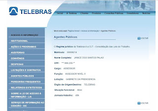 Bom dia ! E passados mais de um ano, ela continua nos quadros da Telebras, como Jornalista e com ganhos de mais de 13 mil mensais mais benefícios.