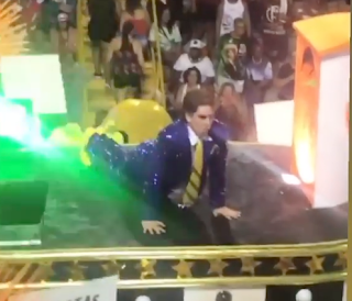 Ao lado, o palhaço da Globo tentando ridicularizar Bolsonaro.