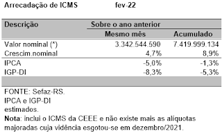 No total, fevereiro rendeu R$ 3,3 bilhões para os cofres públicos estaduais do RS.